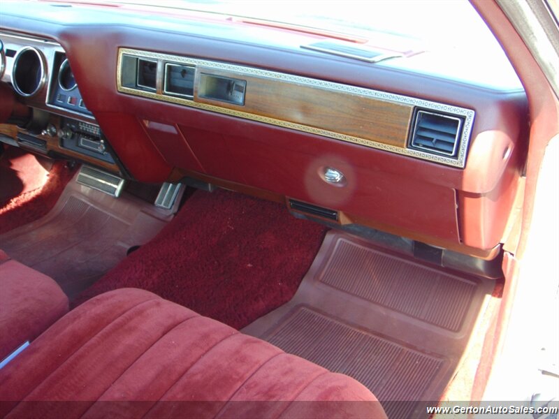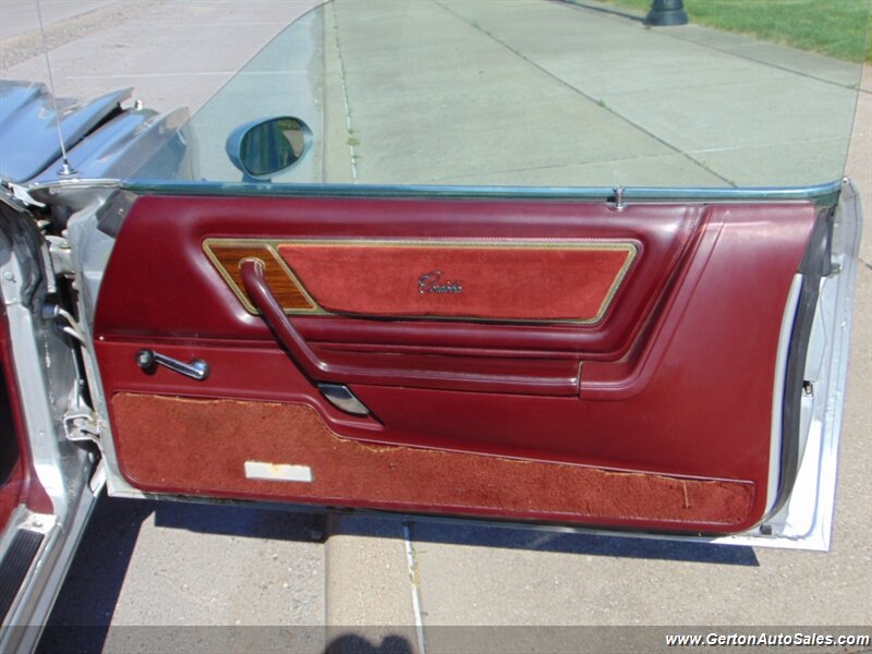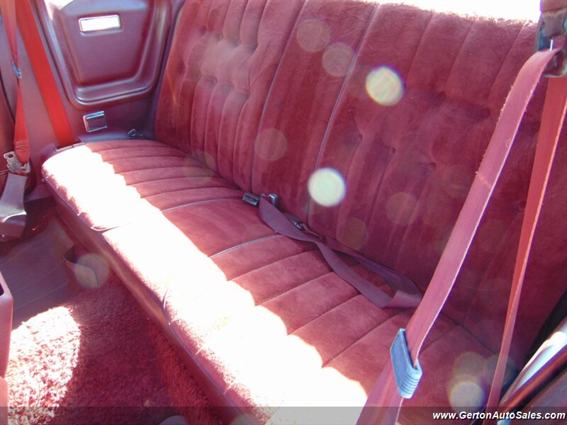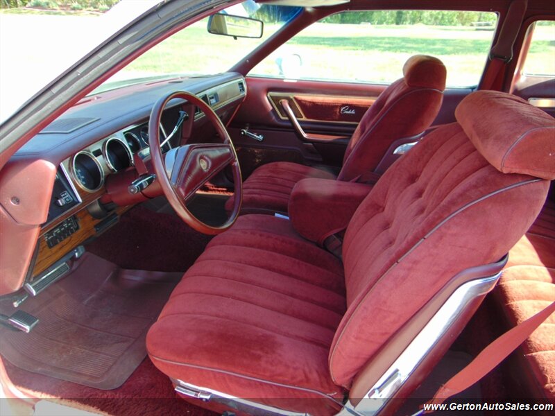 Our 1976 Cordoba was sold new at our local Chrysler dealership and still sits on its original title! This car is finished in silver metallic over maroon crushed velour (sorry, no fine Corinthian leather!) and is equipped with the 400 cubic inch Chrysler V8 with Thermoquad 4-barrel carb and Lean Burn computer controls all backed by a Chrysler automatic transmission. Options include power locks, air conditioner, tilt steering wheel, and cruise control. The original owner had the car repainted in its original silver metallic sometime in the late 1980's then parked it in the early 1990's. It was last licensed in 1992! This car has been driven only a few miles around town since we got it up and running, so we recommend trailering the car until it has been thoroughly vetted for roadworthiness. Don't miss the rare opportunity to own one-owner big-block Chrysler! See all photos of this and other fine vehicles and RVs at www.gertonautosales.com or call John Gerton at 812-838-2248 to set a time to see it in person. Tax, title, and $225.00 documentation fee extra.
