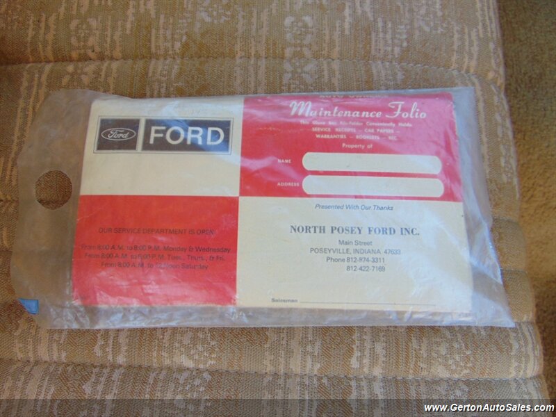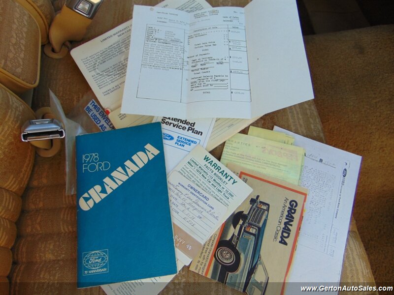 This 1978 Granada is a true survivor! We found this car in a local garage covered in old quilts! It was sold new at North Posey Ford and has remained in Posey County ever since. Due to the fact this car still has original paint and interior and still rides on its original tires with matching spare, we believe the odometer reading to be correct however the title is officially marked "not actual" and the car is sold accordingly. This Granada is well equipped with the 302 V8 and automatic, air conditioner, cruise control, and power locks. This cars shows minimal wear and tear with only minor dings, rock chipped windshield, and lightly soiled carpet. ***PLEASE NOTE*** Due to the fact this car has been parked for many years and still sits on original tires along with other items that would have normally been replaced over time we will insist, in the interest of safety, that the buyer trailer the car home. See all photos of this and other fine vehicles and RVs at www.gertonautosales.com or call John Gerton at 812-838-2248 to set a time to see it in person. Tax, title, and $225.00 documentation fee extra.