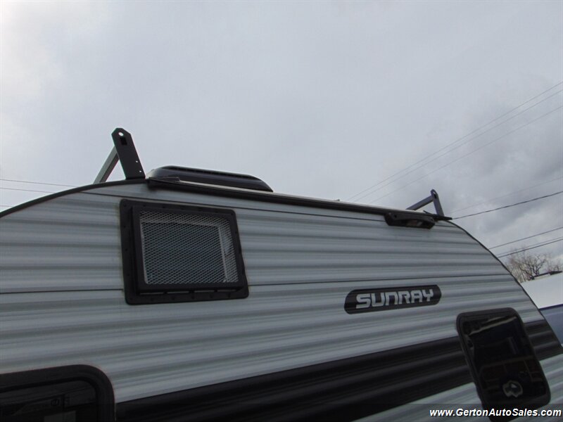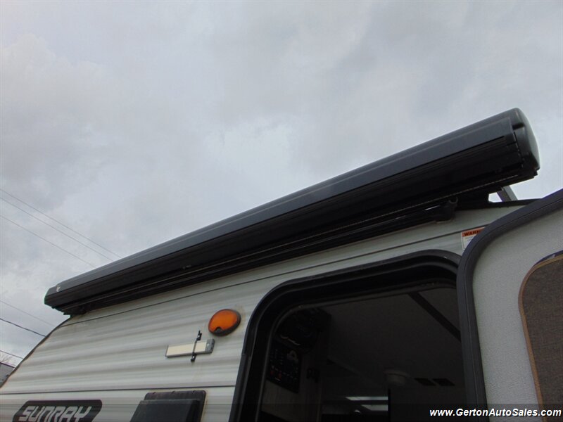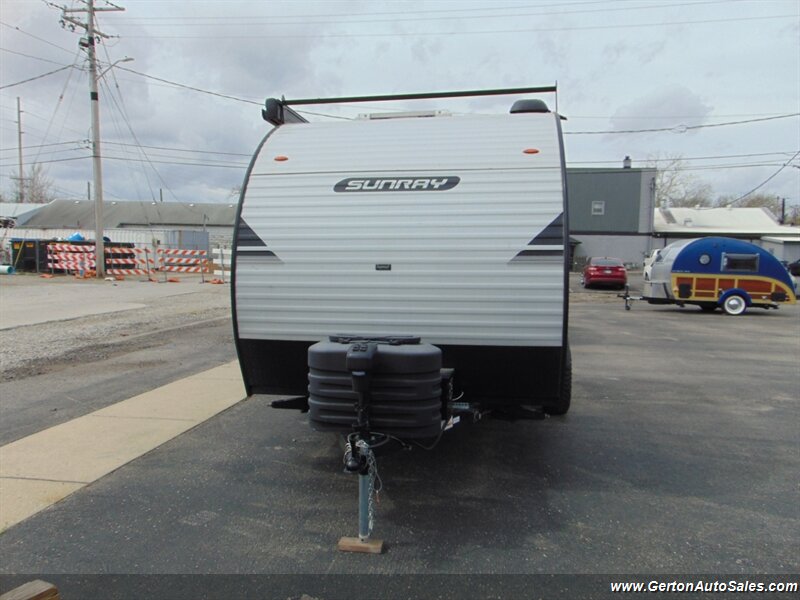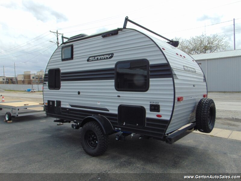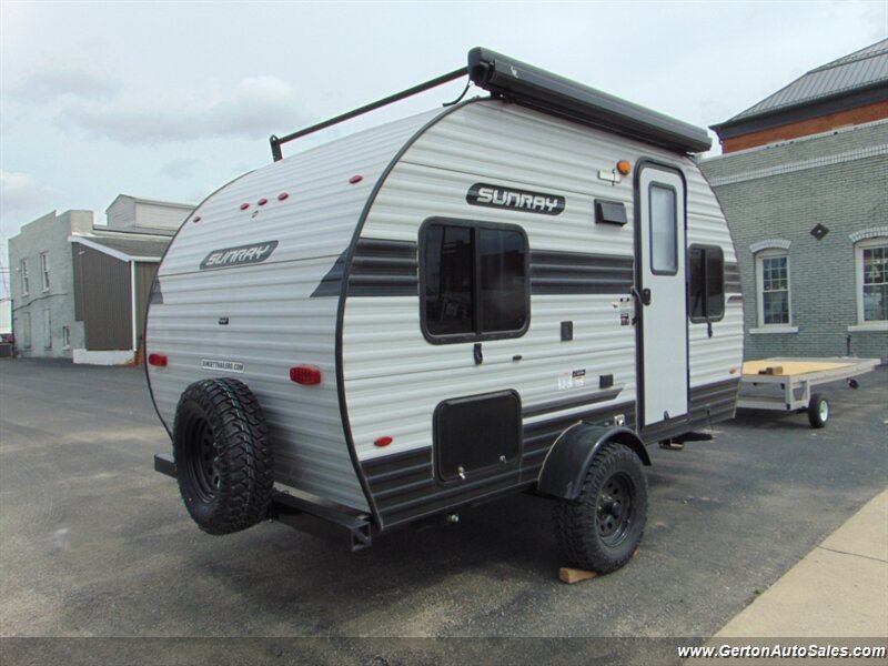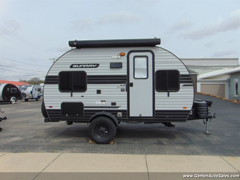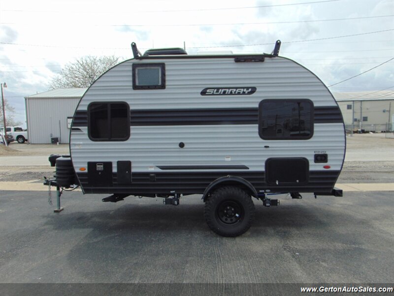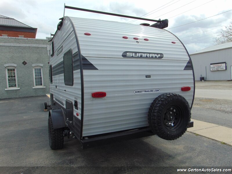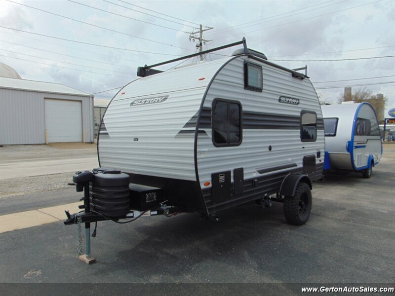 Our Sunset park Sunray 149 comes to us as a one-owner trade-in that has been nicely optioned with roof mounted solar, power awning, and power tongue jack. the Sunray 149 is "canned ham" style travel trailer with an off-road twist. This coach features sleeping for 2-3 people, galley with 12V refrigerator, dry bath, and more. The lifted suspension and off-road tires make this an ideal coach for the adventurous RV'er, too! UVW on this coach is 2260 pounds. GVW is 3500 pounds. Current book value as optioned is $21325.00. See all photos of this and other fine RV's and vehicles at www.gertonautosales.com or call John Gerton at 812-838-2248. Tax, title, and $225.00 documentation fee extra.