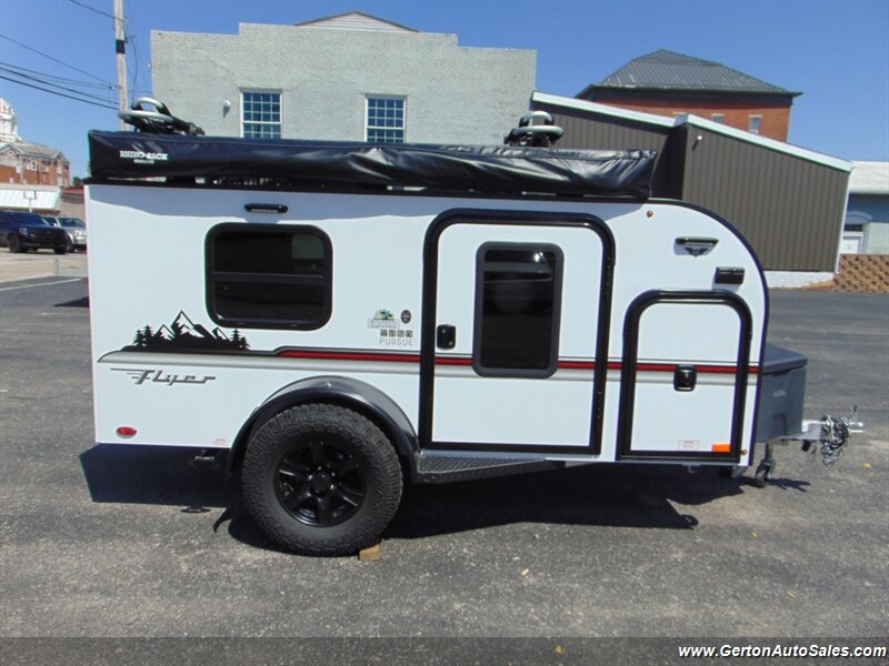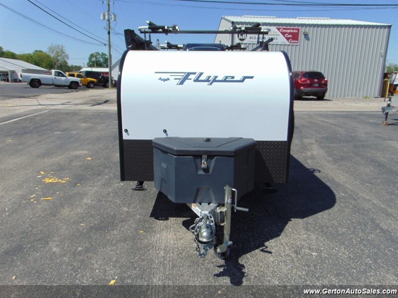 This super clean 2021 inTech RV Flyer Pursue comes to us from friends of the Gerton family and is exceptionally clean and well cared for. This coach is equipped with the off-road tires and wheels, air conditioner with heat strip, roof rack with two owner-installed bike racks, Rhino Rack Batwing awning, and slide out kitchen with stove top and refrigerator. UVW on this coach is 1575 pounds and GVW is 2200 pounds. See all photos of this and other fine RVs and vehicles at www.gertonautosales.com or call John Gerton at 812-838-2248 to set a time to see it in person. Tax, title, and $225.00 documentation fee extra.